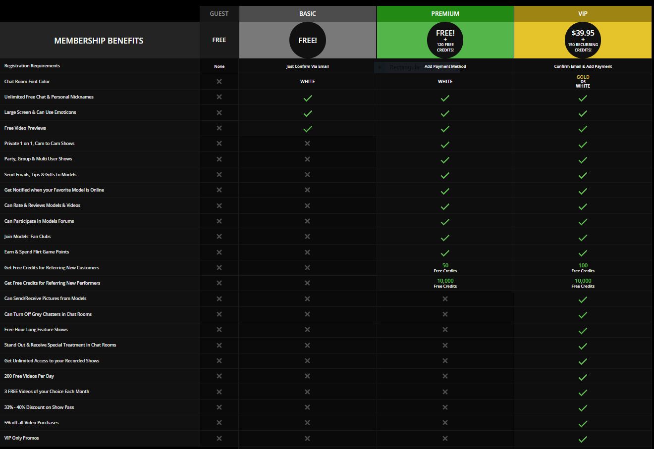 VIP members are members who pay a reoccurring monthly fee and gain the additional benefits listed below.